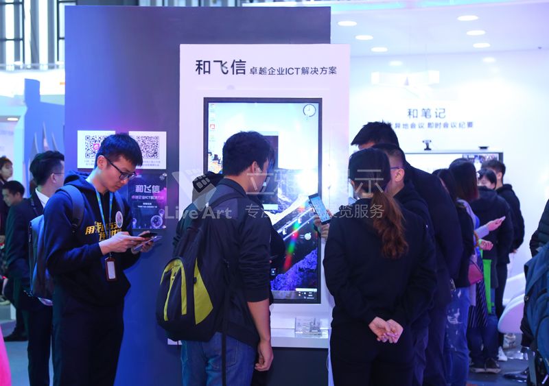 立雅展示結(jié)合中移互聯(lián)網(wǎng)在本次大會(huì)所展示的產(chǎn)品及提供客戶體驗(yàn)的想法,設(shè)計(jì)展區(qū)體驗(yàn)區(qū),結(jié)合產(chǎn)品特性設(shè)計(jì)展示柜、展示墻并合理布局各產(chǎn)品體驗(yàn)區(qū)。充分利用展臺(tái)空間,合理化設(shè)計(jì),以桁架為整體架構(gòu)搭建,以立體方形框架貼發(fā)光字彰顯品牌,配以大小一致的立體發(fā)光燈箱裝飾,為展臺(tái)增加一大亮點(diǎn),最終使展臺(tái)完美展示人們眼前。