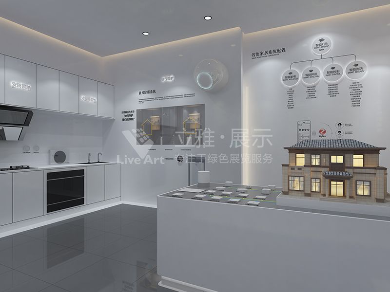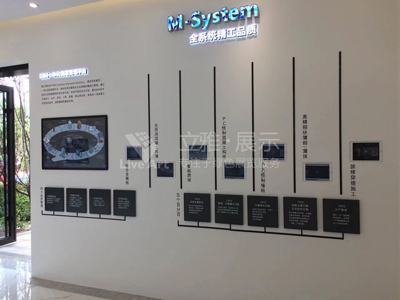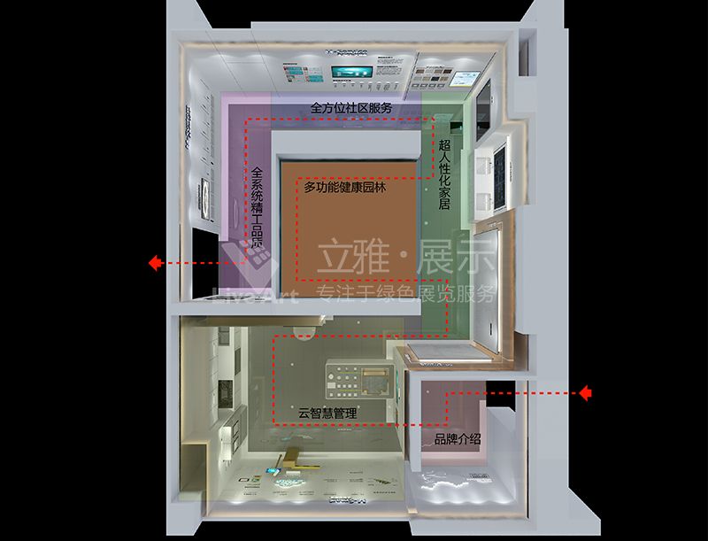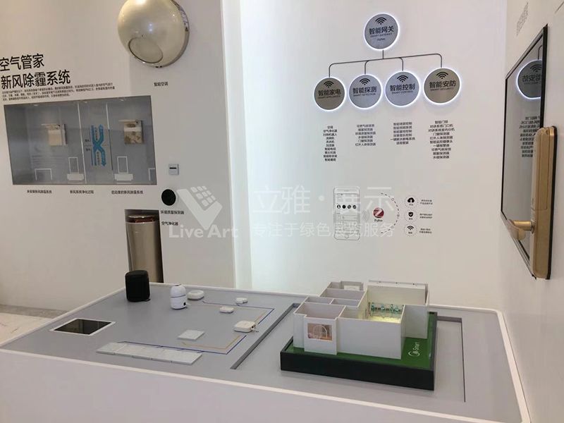 首先,讓我們來看看展廳的布局。展廳的展示內容分為“品牌介紹”、“云智慧管理”、“超人性化家居”、“多功能健康園林”、“全方位社區(qū)服務”、“全系統(tǒng)精工品質”6個部分。