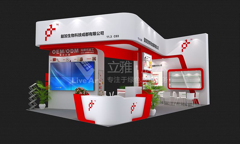 益加生物科技成都有限公司是一家生產(chǎn)益生菌產(chǎn)品的的公司。立雅依據(jù)益加的企業(yè)形象提取益生菌的造型特點(diǎn)打造了這個(gè)形狀特異的展臺(tái),打破了呆板的方正結(jié)構(gòu)使整個(gè)展臺(tái)看上去活力四射。紅色的點(diǎn)綴將整個(gè)展臺(tái)串通一氣,凸顯了造型的空間感和流暢感。
