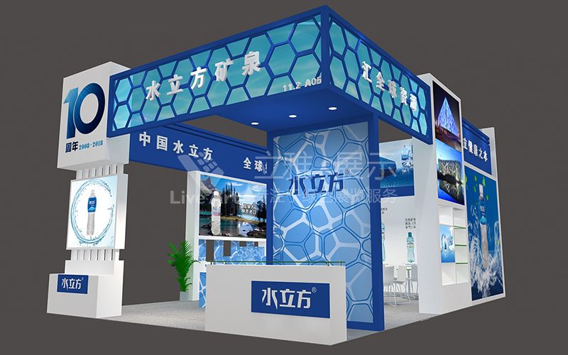 廣東水立方大健康飲用水有限公司是一家優(yōu)質(zhì)飲用水開發(fā)定制、生產(chǎn)與銷售于一體的企業(yè)。水立方是立雅的老客戶,本屆展會(huì)造型依舊按照往屆的進(jìn)行制作,效果也是一如既往的好。