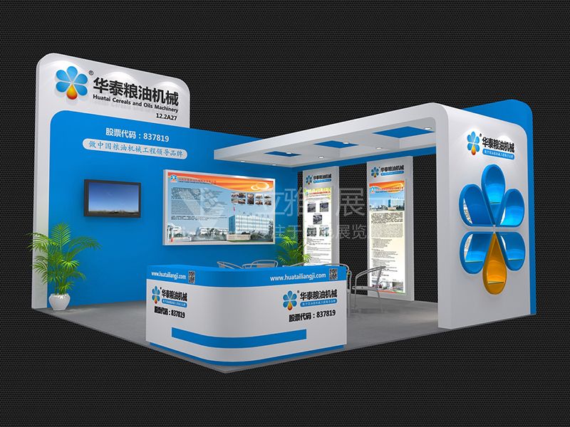 河南華泰糧油機(jī)械股份有限公司是一家生產(chǎn)食品加工機(jī)械的公司。立雅依據(jù)華泰的品牌形象,使用藍(lán)色和白色作為主色突出機(jī)械制造業(yè)的形象特征。運(yùn)用LOGO的形狀制作造型墻,強(qiáng)調(diào)了品牌的同時(shí)讓展臺(tái)顯得更加有親和感。