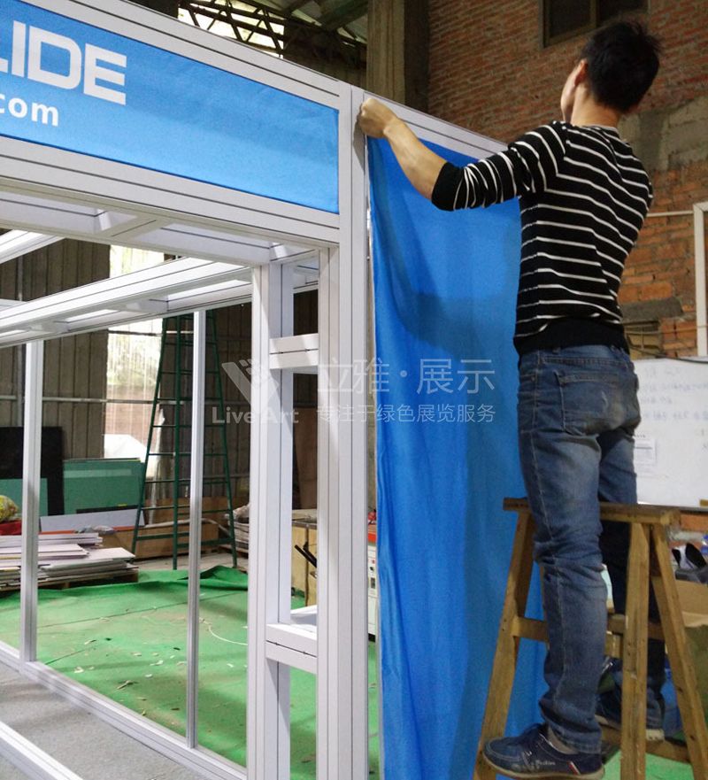 項目背景:Autoslide是一家外貿型企業(yè),為打開國外市場,尋求合作,每年都需要籌備幾次國外展會,為使類似Autoslide企業(yè)的出國展多展客戶順利參展,立雅展示根據(jù)客戶特性提供買斷材料自搭建展臺解決方案,物料大多采用輕便且易安裝和拆卸的鋁合金材料及畫面色彩豐富的熱轉印布飾系統(tǒng),方便客戶快速自搭建,簡易安裝無需專業(yè)人士指導,一次性買斷材料更為客戶節(jié)約成本,多次參展重復使用。