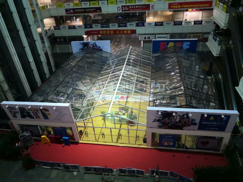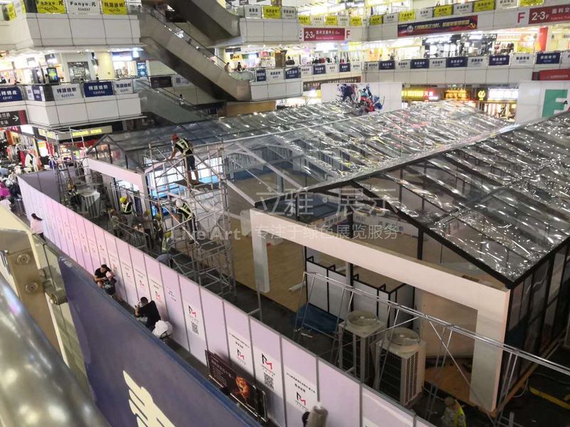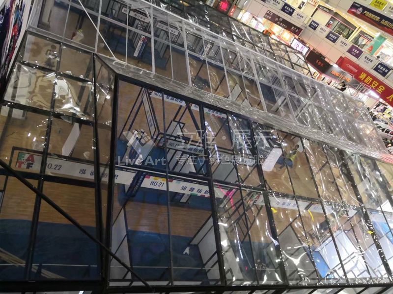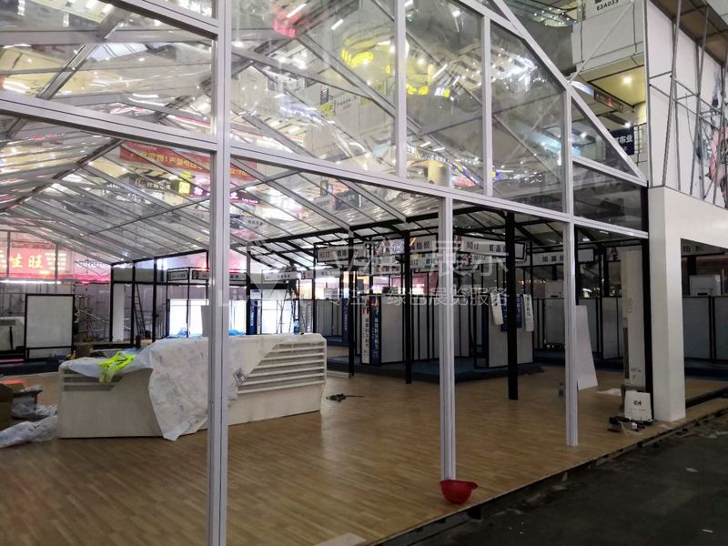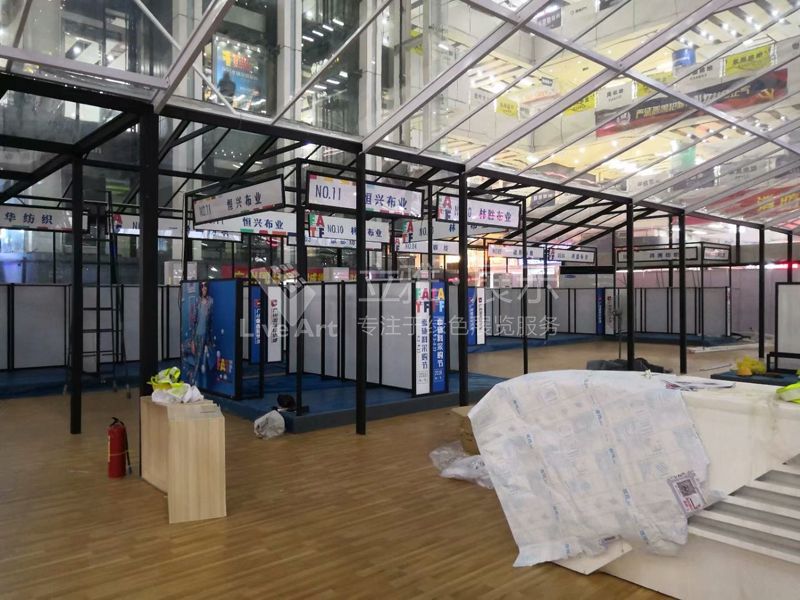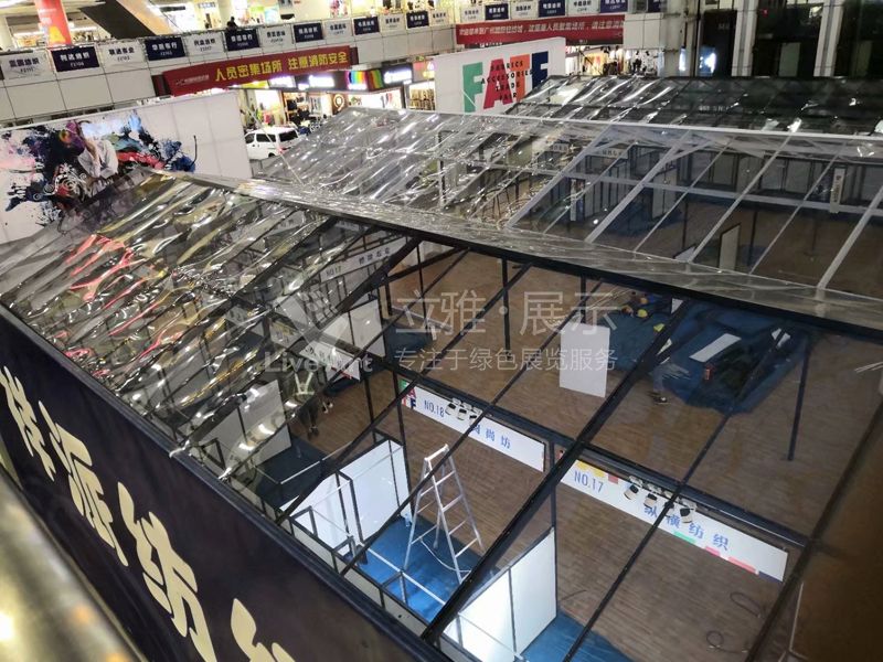 上屆面輔料采購(gòu)節(jié)整體結(jié)構(gòu)采用金屬結(jié)構(gòu)氟碳噴涂,配合頂部透明亞克力頂棚,營(yíng)造一個(gè)獨(dú)立、密封、但又通透的展示空間,所有畫面采用綠色環(huán)保、高清、無氣味的熱轉(zhuǎn)印噴繪布。