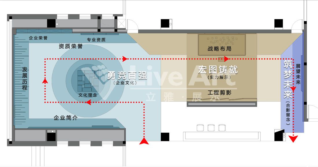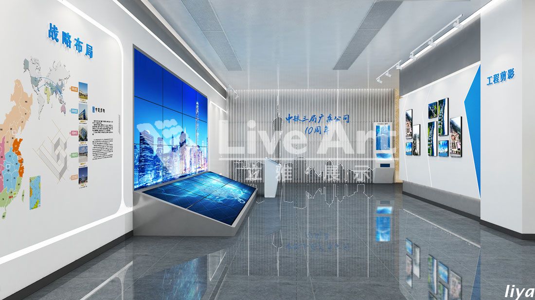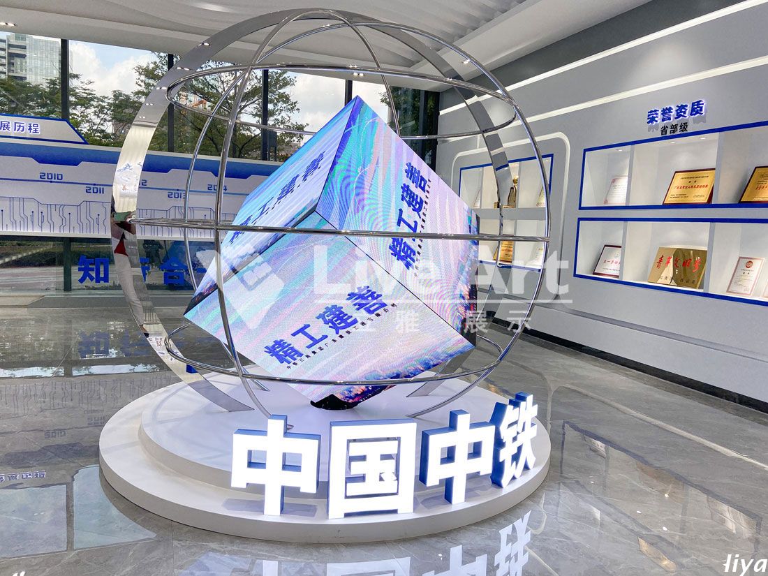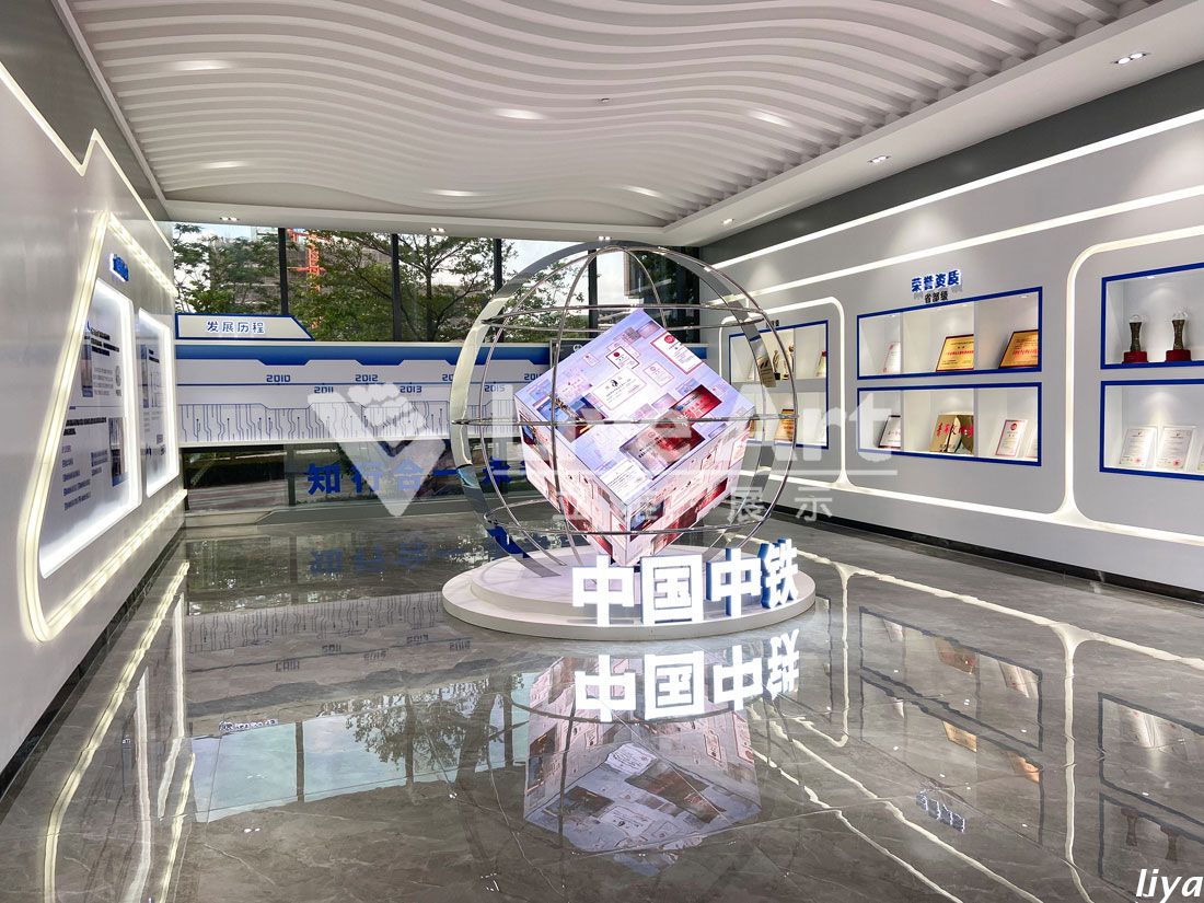 通過(guò)線條的形變、聚散、運(yùn)動(dòng)等不同形態(tài)的演繹,呈現(xiàn)出前沿中鐵,榮創(chuàng)未來(lái)的品質(zhì)感和使命感,進(jìn)一步強(qiáng)化布展主題。