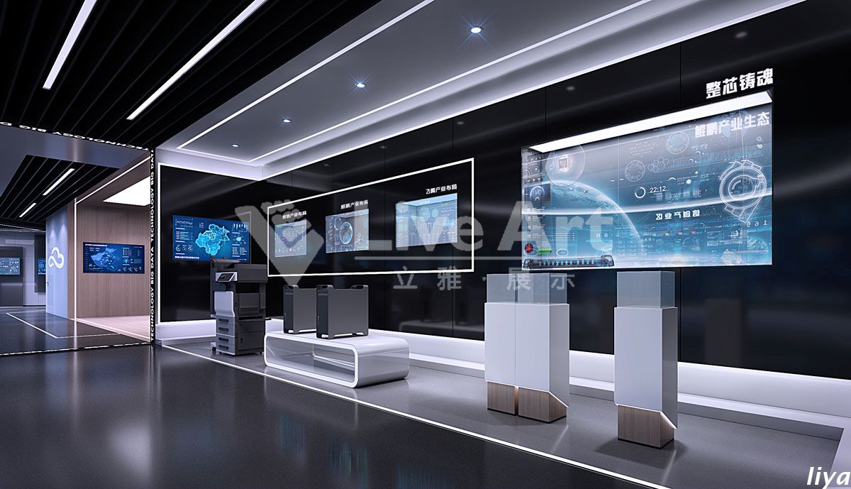 商務(wù)合作平臺(tái):展廳中的通道區(qū)域,作為展廳中的商務(wù)合作展示平臺(tái),可以邀請(qǐng)合作伙伴在此進(jìn)行其品牌、產(chǎn)品的宣傳介紹。