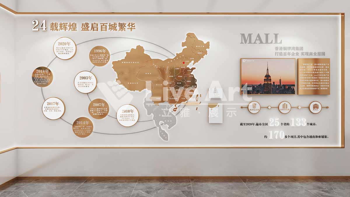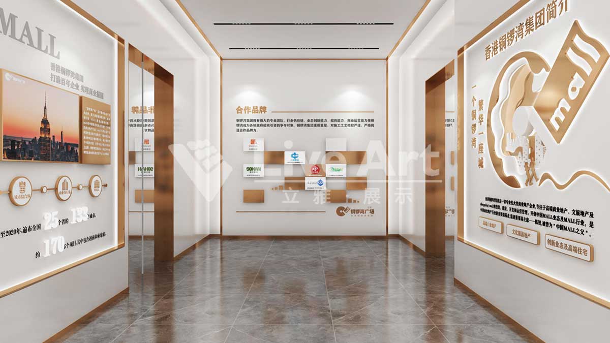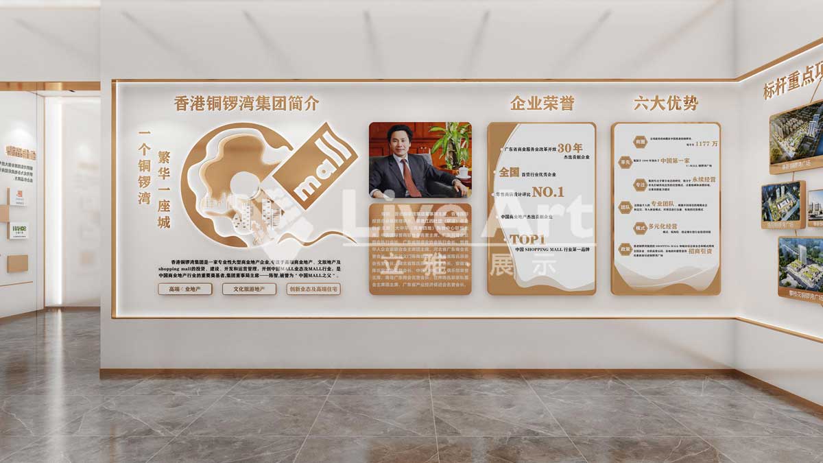介紹香港銅鑼灣集團(tuán)簡(jiǎn)介, 并呈現(xiàn)企業(yè)品牌文化,宣傳 品牌理念,讓參觀者了解企 業(yè)完整而獨(dú)特的文化體系, 介紹與香港銅鑼灣集團(tuán)合作的品牌方。展示香港銅鑼灣集團(tuán)的 品牌發(fā)展、項(xiàng)目介紹及品牌 文化等內(nèi)容。介紹集團(tuán)發(fā)展歷程,呈現(xiàn)企 業(yè)發(fā)展至今的產(chǎn)業(yè)發(fā)展趨勢(shì), 展示集團(tuán)項(xiàng)目布局全國(guó)以及 東南亞區(qū)域的實(shí)力,宣傳主 打品牌。呈現(xiàn)企業(yè)品牌文化,宣傳 品牌理念,讓參觀者了解企 業(yè)完整而獨(dú)特的文化體系, 介紹集團(tuán)投資發(fā)展的三大產(chǎn) 業(yè)業(yè)態(tài)。 通過(guò)廣告燈箱和立體發(fā)光字 等多種展現(xiàn)方式,介紹集團(tuán) 六大優(yōu)勢(shì);展示企業(yè)榮譽(yù)。