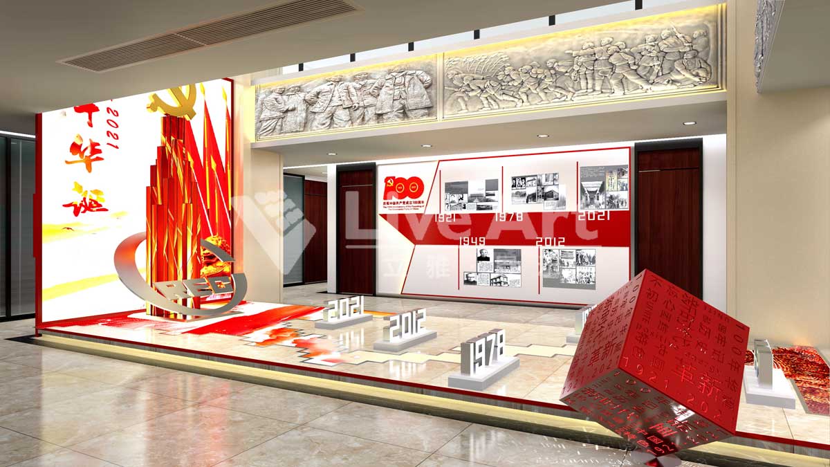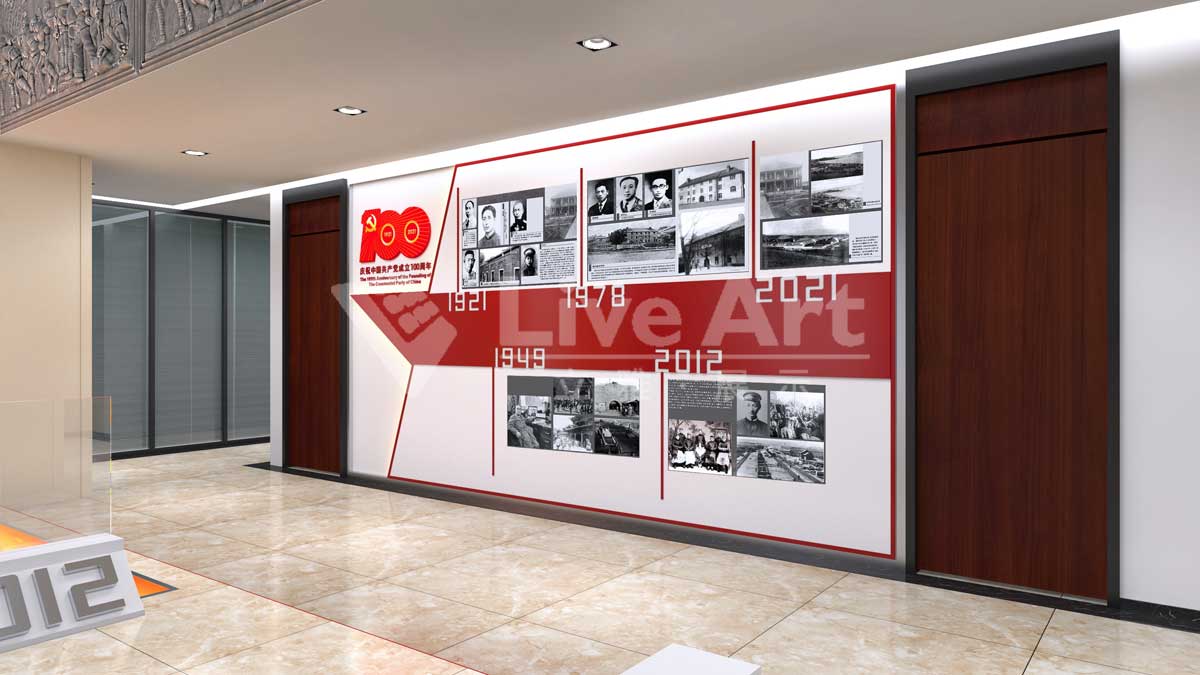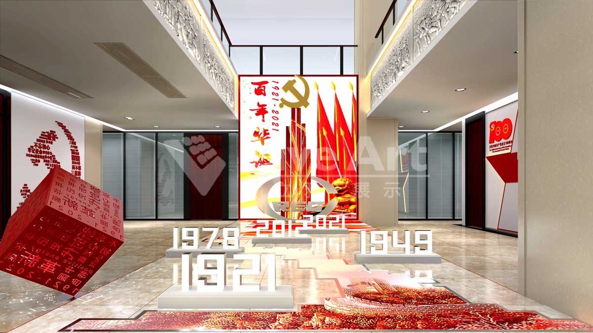 在設(shè)計構(gòu)思上,整體直觀、簡潔、大方色調(diào)相互融合,空間特點鮮明。讓受眾更直觀地認(rèn)識黨的百年輝煌歷程及與時俱進(jìn)。指導(dǎo)中鐵三局黨建工作,以黨建高質(zhì)量引領(lǐng)精品工程建設(shè)高質(zhì)量。慶賀黨的百年華誕,傳遞黨建對企業(yè)發(fā)展的精神指引,企業(yè)工作與黨建的高度融合。
