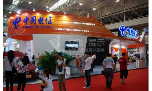 項(xiàng)目背景:中國(guó)電信集團(tuán)公司成立于2000年,是我國(guó)特大型國(guó)有通信企業(yè),中國(guó)電信作為國(guó)內(nèi)最大的綜合信息服務(wù)提供商,擁有世界第一大固話(huà)網(wǎng)絡(luò)和中文信息網(wǎng),覆蓋國(guó)內(nèi)各地,提供電話(huà)業(yè)務(wù)、互聯(lián)網(wǎng)接入及應(yīng)用、數(shù)據(jù)通信、視訊服務(wù)、國(guó)際及港澳臺(tái)通信等多類(lèi)綜合信息服務(wù)。立雅展示作為中國(guó)電信的友好合作伙伴,全力支持中國(guó)電信企業(yè)提供展覽展示設(shè)計(jì)制作服務(wù)工作,此次展會(huì)中國(guó)電信展位約300㎡,立雅以開(kāi)放式展臺(tái)設(shè)計(jì)風(fēng)格設(shè)計(jì),以木結(jié)構(gòu)為主框架,橢圓形圍頂,以橙色為主色調(diào)涂漆上色,彰顯大氣而不空洞的整體形象。