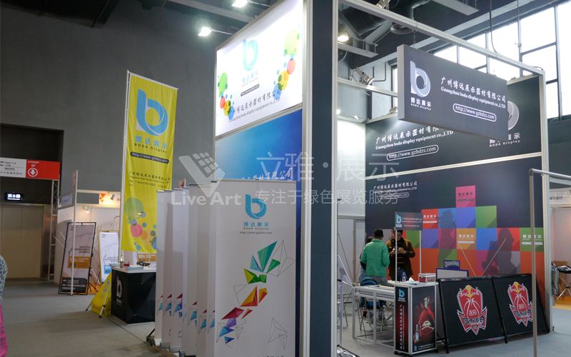 小結(jié):立雅展示根據(jù)博達(dá)企業(yè)的需求為其提供了展臺設(shè)計(jì)搭建一站式方案,主體架構(gòu)為鋁型材環(huán)保展臺制作,結(jié)合鋁型材+熱轉(zhuǎn)印布飾工藝,綠色環(huán)保,可循環(huán)使用,畫面色彩飽滿,大小隨意定制,安轉(zhuǎn)便捷,無需工具,一拉一卡一步到位。